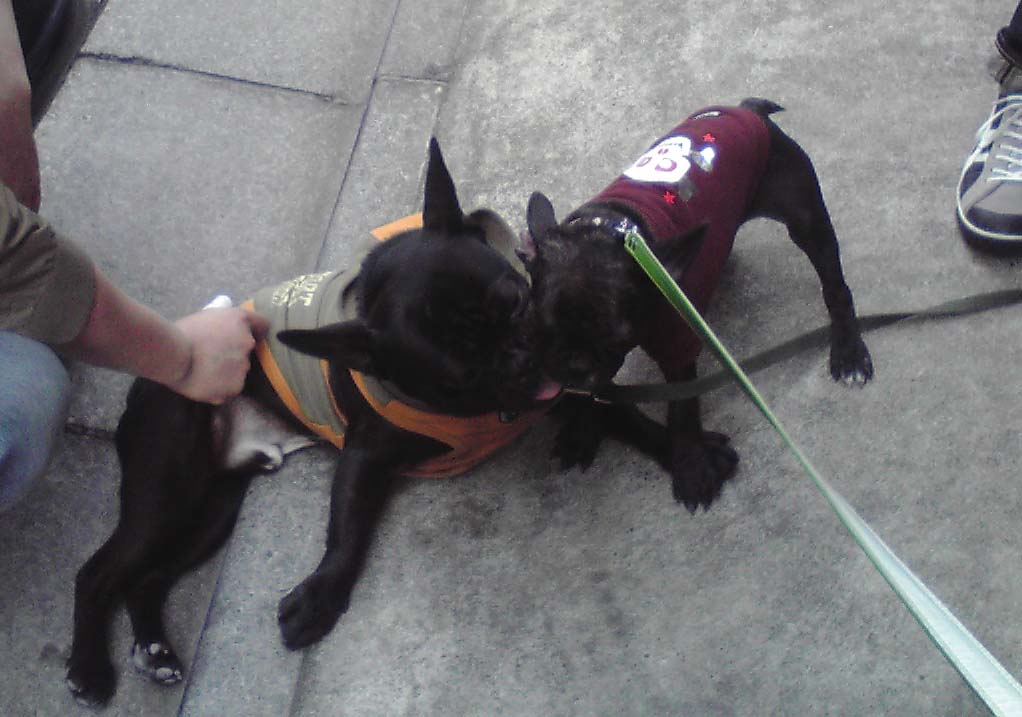 さてさて、写真右、ミサワ選手(LET'S KENDO犬闘クラブ所属)ですが、eu-hairという美容室の兄さんと知り合い、そこにいる同じフレンチブルドックのKEN先輩(2歳)と遊ぶ事になりました。遊びといっても私的には、ガチのスパーリングをお願いしました。